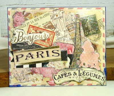 I decided to make a beach scene and use some of my collection of suitable digital papers as well as bits of ephemera