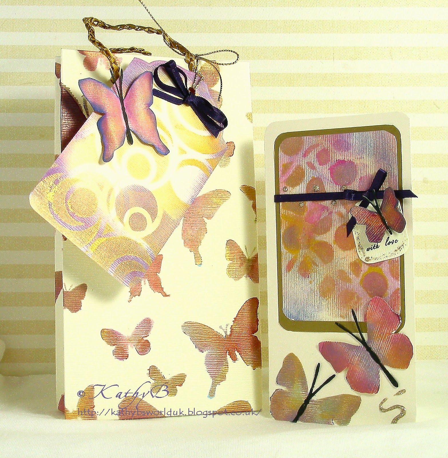 ReplyDeleteA wonderful matching set Kathy. The butterflies are gorgeous. Thanks for the great tutorial on the bag xx